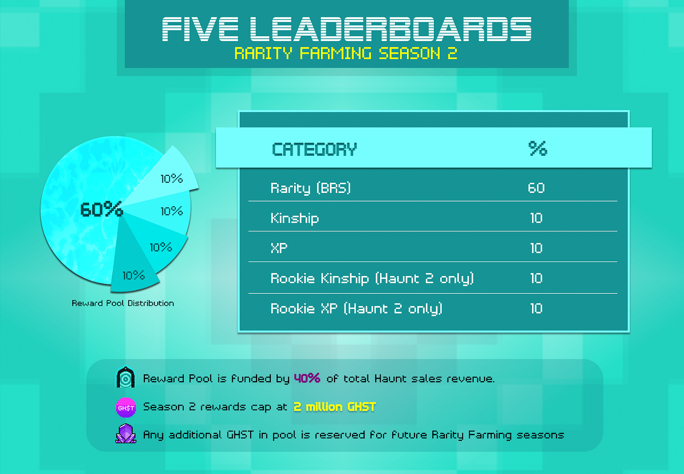 - Any additional GHST in the pool will be reserved and staked to earn more for future seasons.